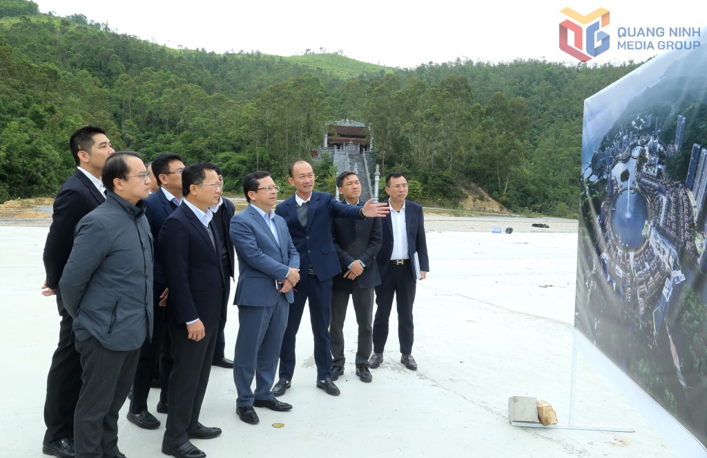 Đoàn công tác Ban Chính sách, chiến lược Trung ương khảo sát tại dự án Khu dịch vụ du lịch phức hợp cao cấp tại Khu kinh tế Vân Đồn. (Ảnh: Bảo Quảng Ninh).